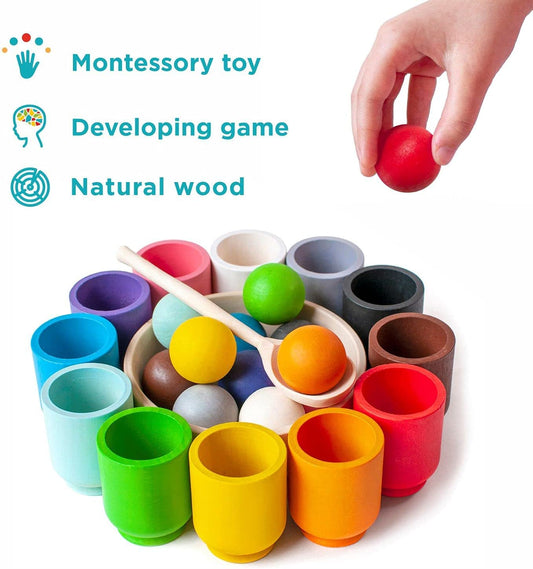 Wooden Sorting Toy Toddler Learning Activities 12 Balls & 12 Cups ( 40 mm Ball Size )