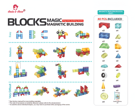 Magic Magnetic Blocks DIY Building Set (40 Pieces) | Colorful Magnetic Tiles for Kids | Creative STEM Construction Toy for Boys & Girls (3+ Years)