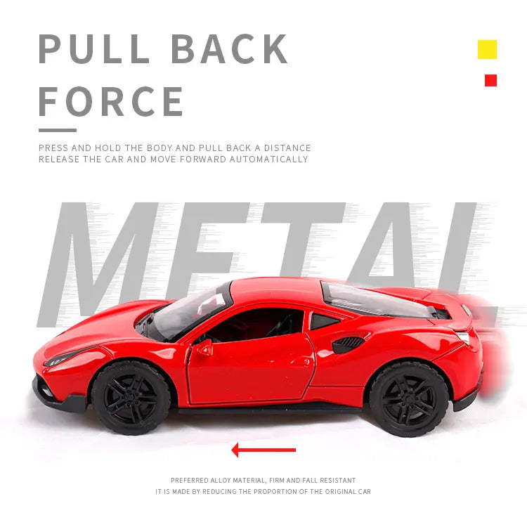 FERRARI 1/36 Die cast metal Alloy Cars, openable doors With Pull Back Function with light & Music multicolor