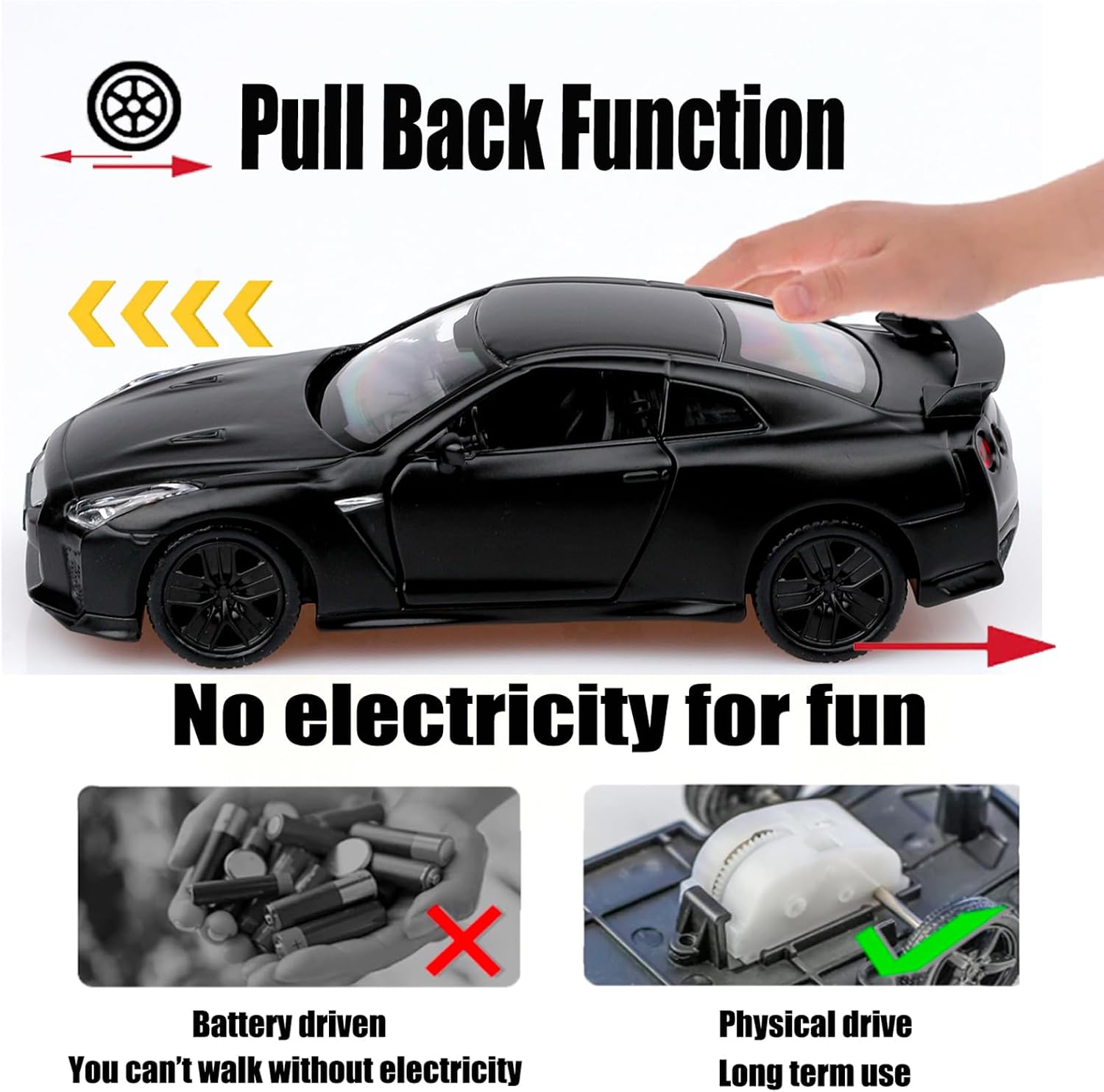 NISSAN GTR 1/36 Die cast metal Alloy Cars, openable doors With Pull Back Function with light & Music multicolor