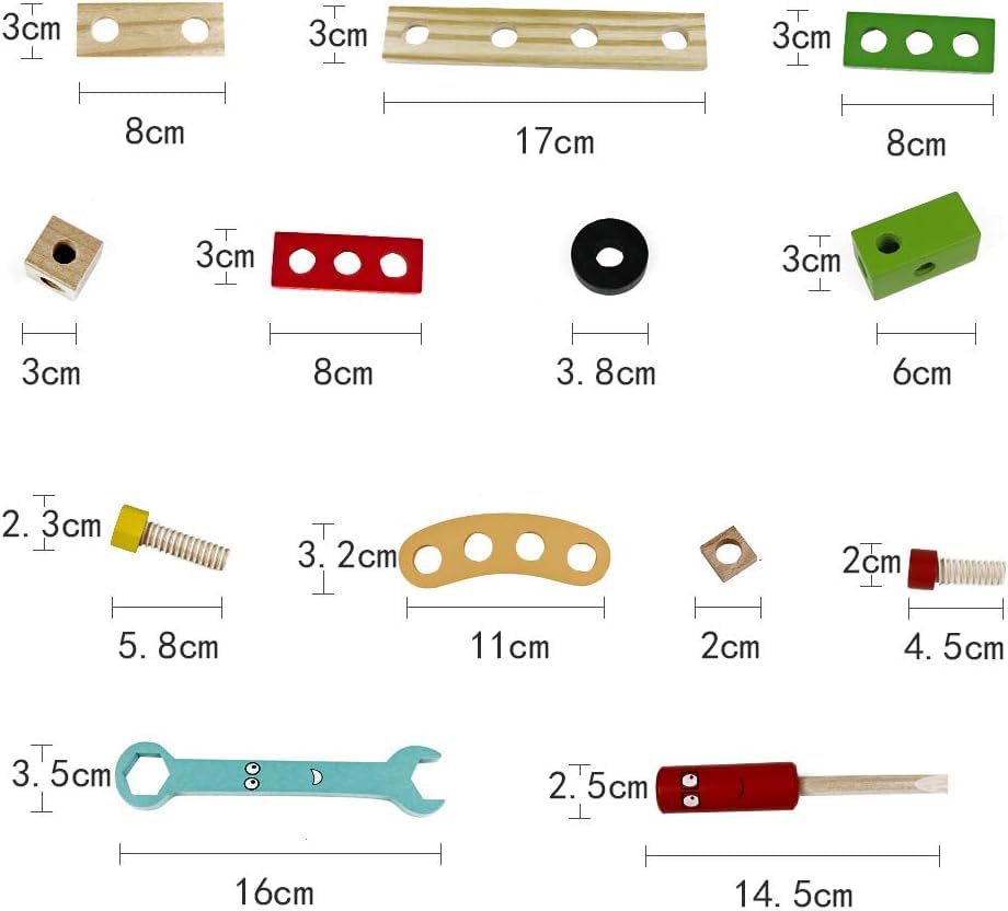 Wooden Construction Tool Kit, 28 Pieces Educational STEM Building Toy Set with Storage Box, Screws and Nuts, Red Green Yellow, for Kids 3-6 Years